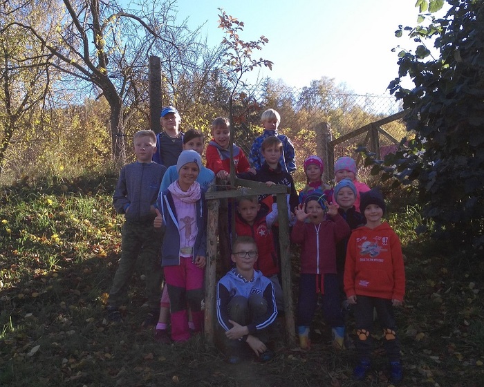 Děti ze školky a školy ve spolupráci s panem Hoškem zasadily dva nové stromky na naší školní zahradě.