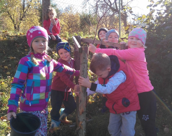 Sázení stromků na školní zahradě