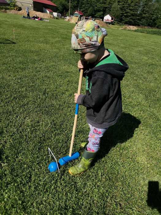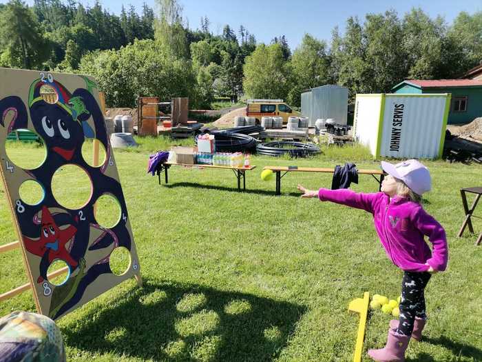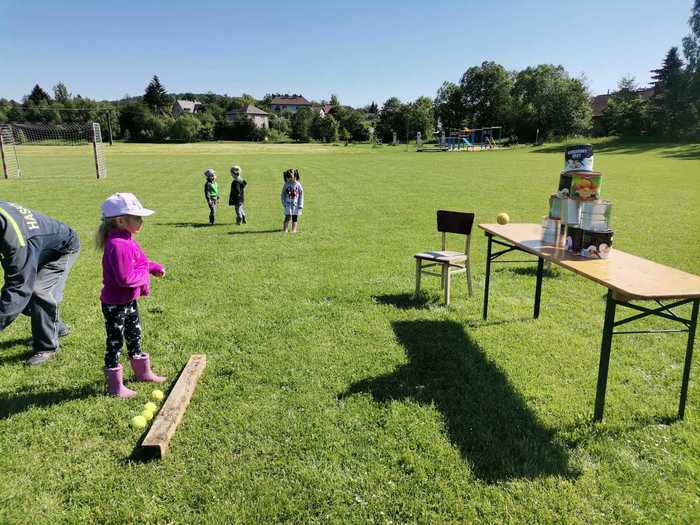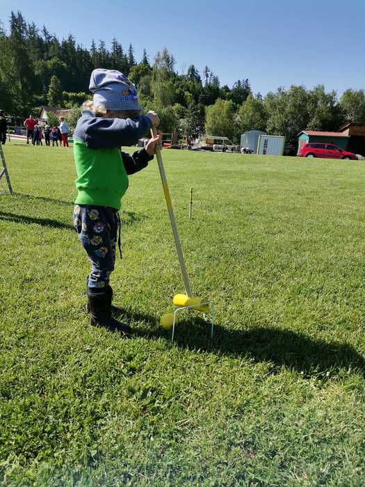 Pak jsme se rozdělili do několika skupin a procházeli stanoviště s úkoly. Museli jsme se trefit tenisovým míčkem do děravé chobotnice, přecházet po laně, shazovat plechovky a také jsme si zkusili, jak se hraje kroket. Největší úspěch měla jistě u dětí střelba ze vzduchovky.