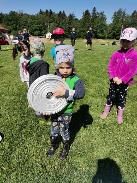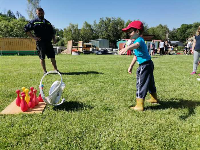 Ve čtvrtek 2. 6. jsme oslavili Den dětí. Veškerý program pro nás připravili místní hasiči, během kterého si děti vyzkoušely různé dovednosti. Nejprve jsme si prohlédli hasičské auto, jakou má barvu, kolik má sedaček, vyzkoušeli jsme si hasičskou helmu, zatroubit a spustit sirénu. Nakonec jsme se i hasičským autem za zvuku sirény kousek svezli, jako kdybychom jeli k opravdovému ohni.