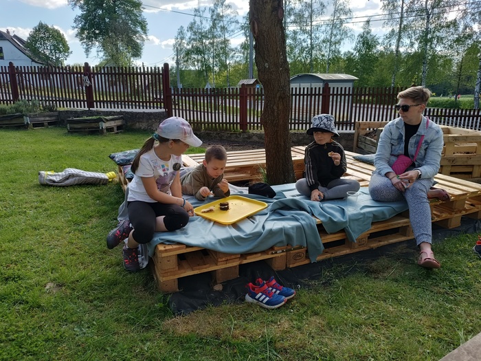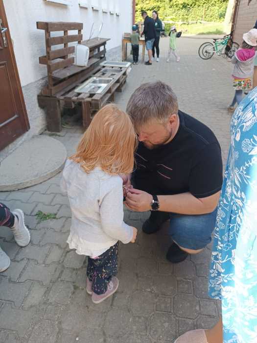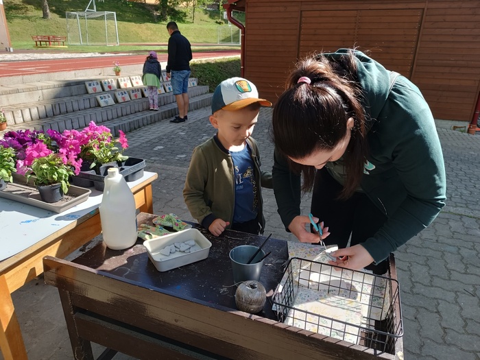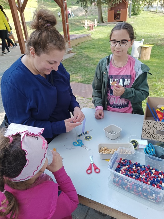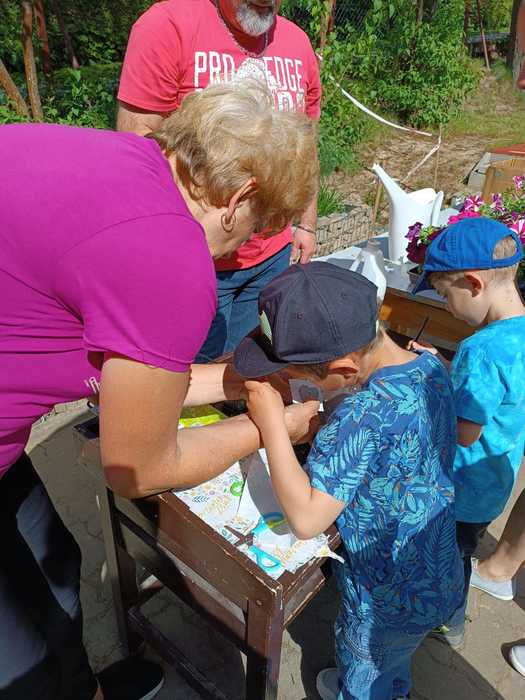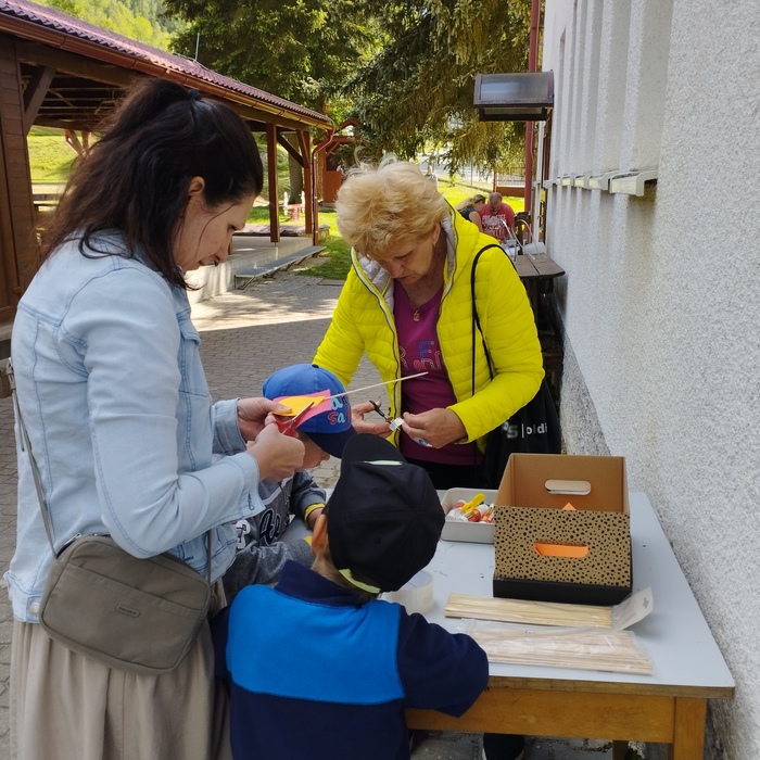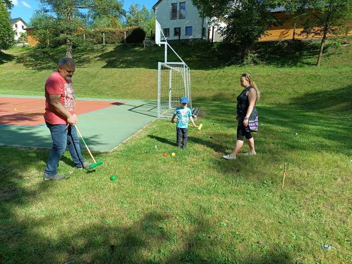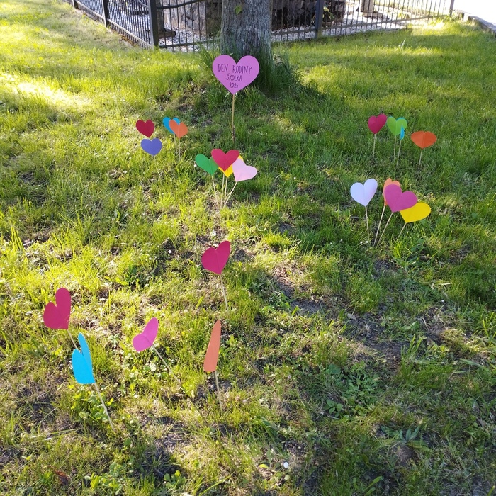 Slunce, zahrada, zábava a hraní, to byly hlavní ingredience jednoho květnového odpoledne. Na „Den rodiny“, jak jsme toto setkání nazvali, jsme se s dětmi důkladně připravovali. Naším přáním bylo připravit takové aktivity, aby se každý, ať malý nebo velký, nejen pobavil, ale aby si také vytvořil společné zážitky se svojí rodinou. A tak na naší zahradní slavnosti nechybělo zpívání, tancování, přesazování květin (to pro maminku), tvoření klíčenky (to zase pro tatínka), vyplétaná srdíčka na plotě (tam byla důležitá spolupráce členů rodiny a potom šlo proplétání pěkně od ruky), a ještě další srdíčka, tentokrát papírová, barevná a na špejli, ve stejném počtu jako je členů jednotlivých rodin. Ta se krásně vyjímala zapíchnutá na zeleném trávníku. Rodiny se mohly pobavit u společenské hry „Věž“ z dřevěných bloků, zručnost a přesnost vyzkoušet u kroketu a pořídit si pro vzpomínku pár fotografií v květinovém foto koutku. Samozřejmě nemohl chybět zahradní piknik s ovocnými špízy, čokoládovými dortíky, houstičkami se sýrem a zeleninovou oblohou a mnoho dalších dobrot. Všechno chutnalo výtečně v trávě pod modrou oblohou, s kamarády a těmi nejbližšími. Na úplný závěr proběhlo letní kino s promítáním videí ze školky a nechyběla ani hezká kreslená pohádka. Spokojení jsme se rozcházeli domů a snad si každý z nás říkal: „Bylo to fajn odpoledne“.