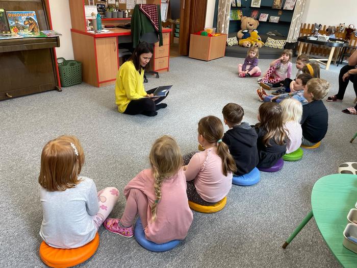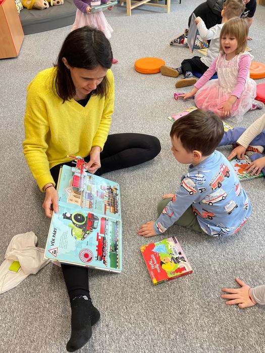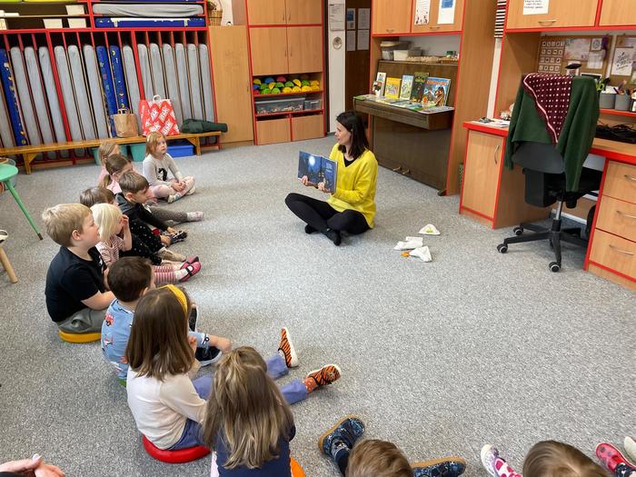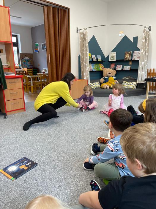 Březen je měsíc knihy, a proto mezi nás do mateřské školy zavítala paní knihovnice. Společně si s dětmi přečetla knihu Kam mizí měsíc od spisovatelky Andrey Pořízkové s krásnými ilustracemi Ivony Knechtlové, kterou děti velmi dobře znají a mají její knihy rádi. V průběhu čtení čekala na děti zábavná aktivita, kdy si každý z tajemného pytlíčku vylosoval otázku, na kterou odpovídal. Děti tak rozvíjely nejen svou fantazii a představivost, ale i schopnost přemýšlet. Společně uvažovali nad tím, jak by mohl příběh skončit, jak by se mohl jmenovat jinak nebo zda se mohl skutečně stát. Na závěr si děti mohly prohlédnout různé knihy, které paní knihovnice přinesla, například o zvířátkách, strojích či hasičích. Bylo vidět, jak velkou radost jim knihy dělají, a proto se snažíme v dětech nadále podporovat pozitivní vztah ke čtení.