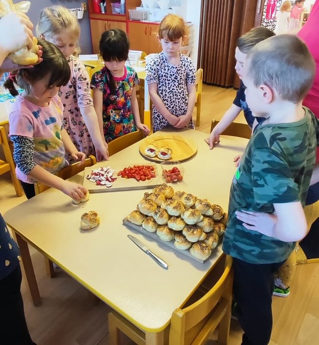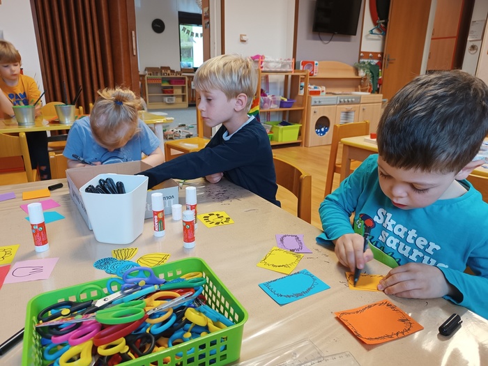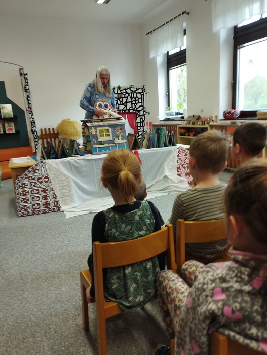 3. dubna se vernisáží v kostele Českobratrské církve evangelické v Sázavě otevírala výstava dětských výtvarných prací na téma „Jaro“. Zamýšleli jsme se, jak vernisáž udělat pro veřejnost zajímavou a přitažlivou. Naše volba padla vzhledem k jarnímu období na báseň Karla Hynka Máchy Máj. Samozřejmě jsme vybrali jenom ty nejznámější pasáže tak, abychom je dětem mohli přístupnou formou přiblížit. Využili jsme k tomu několik názorných pomůcek, webové stránky ČT Edu s videem určeným přímo pro děti mateřských škol, četli jsme si ukázky z básně a v neposlední řadě na děti zapůsobila nádherná kniha v limitované edici s poutavými ilustracemi Míly Fürstové. K našemu velkému překvapení děti báseň, už od prvního poslechu, velmi zaujala. Společně jsme vybrali a zvolili vzhled kulis a způsob, jakým báseň zdramatizovat. Do malování kulis se zapojily všechny děti a velmi je bavilo stínovat a míchat barvy v různých odstínech od světle růžové po tmavě fialovou. Celá dramatizace se skládala z pohybového vyjádření, reprodukované profesionální recitace, zpěvu písně Máj a závěrečnou recitací posledního čtyřverší básně. Soustředěný a procítěný výkon dětí ocenili všichni návštěvníci vernisáže velkým potleskem. Zjistili jsme, že i náročný literární text, může děti zaujmout a bavit. Svoje poznatky mohou využít pro budoucí vzdělávání.