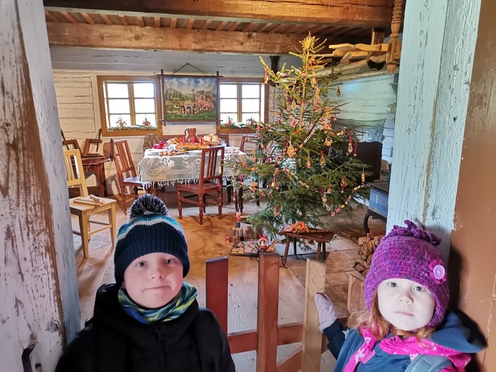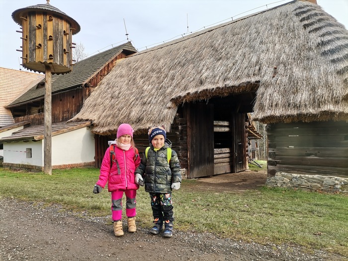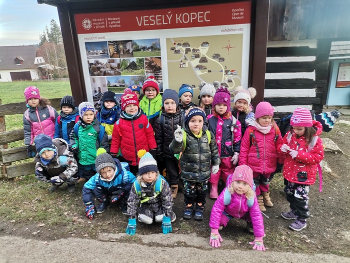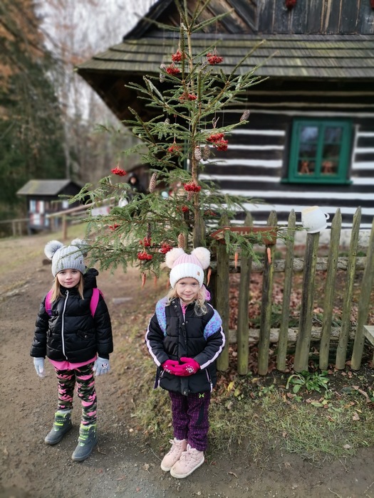 Adventní čas je čas čekání, těšení, kouzelných chvil a tajemných světel svíček. Jak to bylo dávno za časů našich předků? Jaké dodržovali zvyky, jaké připravovali vánoční pochoutky a co to vlastně znamenalo chodit na koledu? To všechno a ještě něco navíc jsme chtěli s dětmi zjistit na naší adventní výpravě do skanzenu Veselý kopec. Právě zde probíhala expozice nazvaná „Vánoce na Veselém kopci aneb ten vánoční čas, dočkali jsme zas“. Procházeli jsme vánočně vyzdobené světničky dřevěných chaloupek, s vyřezávanými betlémy a jablkovými vrkoči za okny. Na stolech jsme obdivovali obrovské pecny chleba, zaplétané vánočky, na kameninových miskách svítila červená jablíčka a ořechy. Velmi se nám líbily perníky vytvořené podle starodávné receptury z medu a koření, vtlačované do vyřezávaných forem z lipového dřeva. V kapličce jsme obdivovali betlém celý vytvořený z tohoto perníku. A viděli jsme ještě spoustu dalších zajímavých věcí: mikulášské pečivo, křížaly z jablek a hrušek, ozdoby na stromeček ze slámy a mašliček, kolední proutky z trnky, holubičky z papíru nebo vyřezávané ze dřeva… A takhle bychom mohli vyjmenovávat ještě dlouho. Děti vše bedlivě a se zaujetím prohlížely a zkoumaly. Klukům se nejvíc líbila dřevěná kola vodního mlýna, olejárny a pily. Holky zase obdivovaly nazdobené vánoční stromečky, dřevěné a textilní hračky dřívějších dětí. Odjížděli jsme plní dojmů a krásných zážitků. A teď už víme, jak vypadaly tradiční Vánoce našich předků na Vysočině.