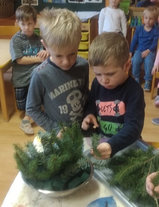 Tak už je tady zase ten krásný a trochu tajemný čas, který děti tak milují. Psaní dopisů Ježíškovi, rozsvěcení svíček na adventním věnci, blikající stromečky na zahradách u domů a hlavně, těšení se na Ježíška, to dětem utíká snad nejpomaleji. Abychom jim to čekání na Vánoce zpříjemnili, společně jsme si ve školce hned na začátku adventu vytvořili svícen se čtyřmi svíčkami, abychom je mohli postupně zapalovat. Děti si také udělaly každý svůj svícen „do hrnečku“ a odnesly si jej domů. Letos jsme pro děti připravili pohádkový adventní kalendář. Děti na každý list s pohádkou vystřihly a nalepili příslušné číslo a každý den, některé z nich vytáhne z vánoční krabičky jednu pohádku. Potom si zapálíme svíčky na adventním svícnu a čteme si „O vánočním lapači snů“, „ O Barborce“, „O Mikuláši“, „O srnkách v zimě“, „O sněhulácích“ a mnoho dalších krásných pohádek. Do Vánoc nás jich ještě spousta čeká. Každou pohádku si pak mohou rodiče vypůjčit domů a přečíst si ji s dětmi třeba před spaním. Všem vám přejeme také krásný pohádkový advent, jako máme my ve školce.