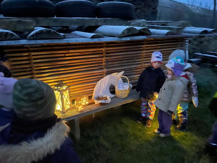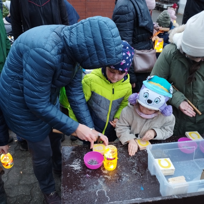 Zimní čas se přiblížil mílovými kroky a svátek sv. Martina byl za dveřmi. Pro děti a rodiče jsme připravili malé putování zasněženým okolím vesnice. Protože krajina už hodně potemněla, bylo nutné si nejdříve vyrobit barevné lucerny, aby si mohli všichni posvítit na cestu. Celým putováním nás provázely rozsvícené svíčky, které nám ukazovaly jednotlivé úkoly. Všichni společně se s nadšením vrhli na zatloukání podkov, skládání obrázků s charakteristickými znaky martinského svátku, sbírání husích peříček, házení podkovou, či provlékání bavlnky jako hřívy Martinova koně. A co teprve, když jsme našli tajemný dopis s naznačenou cestou k hledanému cíli. Již z dálky jsme viděli zářící světlo. Jaké překvapení nás čekalo, když jsme objevili košík plný sladkých svatomartinských rohlíčků a perníkových podkoviček. Po dlouhé cestě nás tak čekala zasloužená odměna. Unavení, ale spokojení a plní zážitků, se všichni rozcházeli do svých domovů. Z dálky byla vidět malá světélka luceren a na vesnici se snášel bílý sníh. Martin už objížděl kraj.