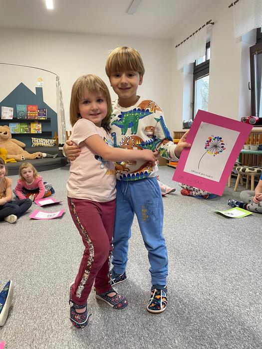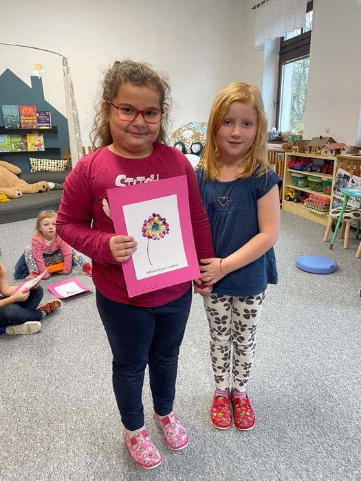 Obrázek pro radost - podpora kladných vzorců chování v rovině kamarádství - každé dítě vytvořilo obrázek pro svého kamaráda, při předání děti povídaly o tom, proč mají svého kamaráda rády
