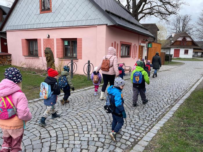 V předvelikonočním čase jsme se vypravili na výlet do Hlinska na program "Velikonoce na Betlémě". Celé dopoledne jsme měli možnost procházet se v malebném prostředí památkové rezervace lidové architektury, které přibližuje návštěvníkům lidové zvyky a tradice spojené s Velikonocemi. Děti měly možnost nahlédnout do roubených chaloupek, kde se seznámily s tradičními řemesly a velikonoční výzdobou. Viděli například zdobení kraslic různými technikami, dozvěděli se, jaké dobroty připravovali naši předkové na sváteční stůl. Celý program byl velmi poutavý a zpestřil nám předvelikonoční období.