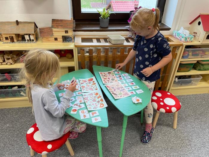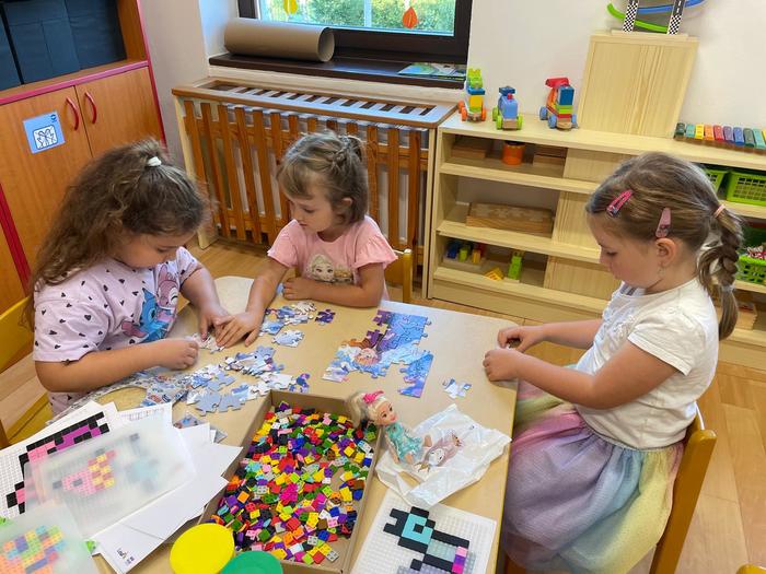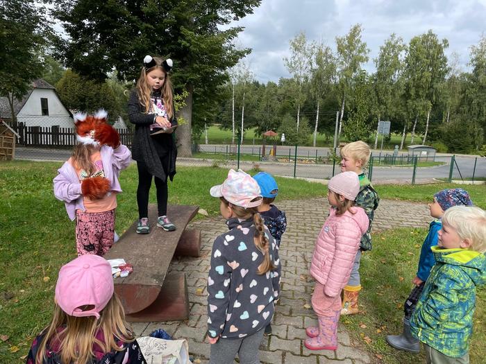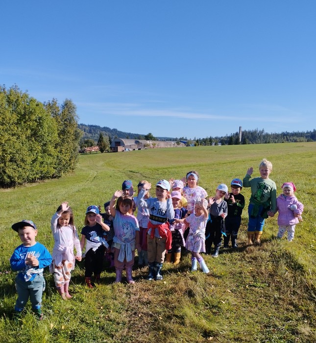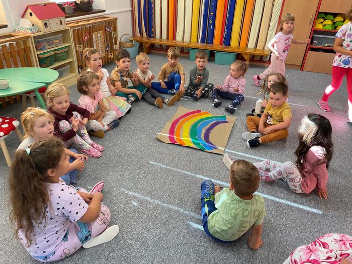 První dny v naší školce byly plné nových zážitků. Některé děti se při loučení s rodiči neubránily slzičkám, ale ty se brzy proměnily v úsměvy. Nové hračky, kamarádi a laskavé přijetí paní učitelek rychle pomohly, aby se všichni cítili dobře. Abychom se do školky vždy těšili a bylo nám v ní dobře, vytvořili jsme společně pravidla v barvách duhy. S dětmi jsme přemýšleli, povídali si a hledali ta pravidla, která jsou pro nás důležitá, aby se nám ve školce hezky hrálo a kamarádilo. Každé pravidlo jsme oblékli do jedné barvy duhy a společnými silami vytvořili velký obraz, který nám bude naše dohodnutá pravidla každý den připomínat. Počasí nám přálo, a tak jsme hodně času trávili na školní zahradě. Stavěli jsme hrady z písku, jezdili na odrážedlech, kopali i házeli míčem a společně si užívali krásné dny venku. Velkým překvapením byla bohatá úroda na našich záhoncích a tak jsme mohli ochutnat rajčátka a papriky, které děti na jaře vypěstovaly ze semínek. Bylo veselo a smích se ozýval ze všech stran. Už teď se těšíme, co všechno nás v průběhu roku čeká. Zábava a hry, dobrodružství, nové dovednosti i kamarádská překvapení. Věříme, že společně prožijeme spoustu hezkých chvil.